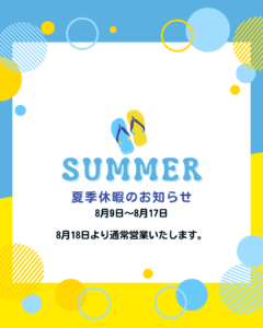 ■休業期間:2025年8月9日(土)〜8月17日(日)